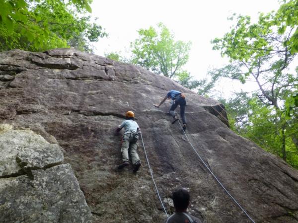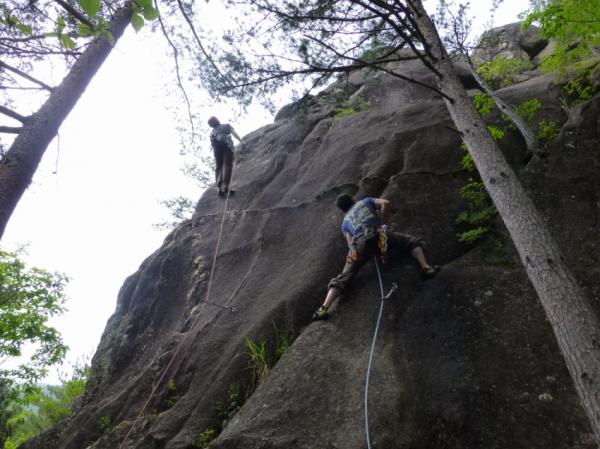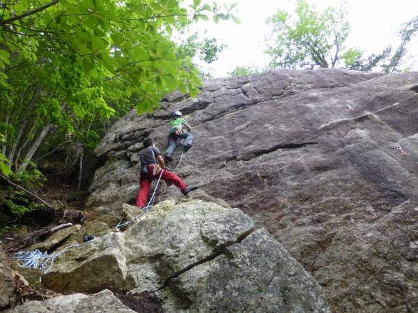ソラマメスラブの下部で5.9~5.10bの3ルートを登り、5.9の『生木が倒れたよ』では3本目でリードの練習をしました。