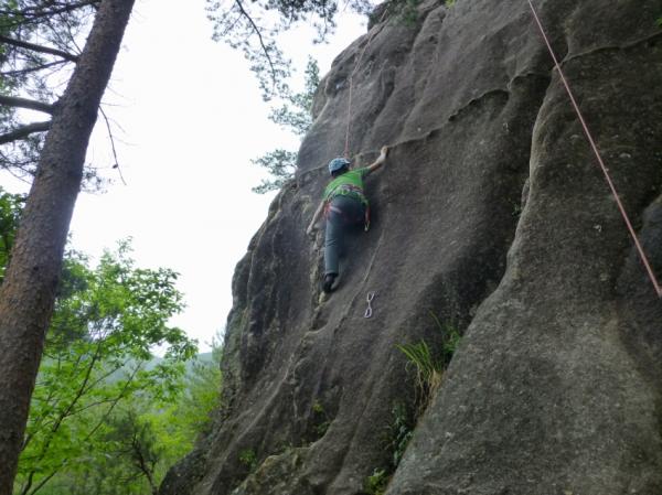 ひょっとこ岩では左端の『精神カンテ』を登りました。中央部の一度左側に体を回した後に再び右に戻るところで苦労しました(A0使っちゃいました…)。
