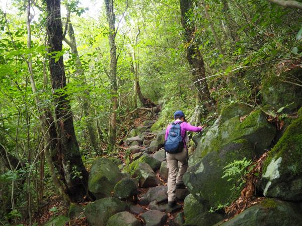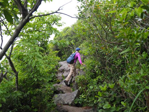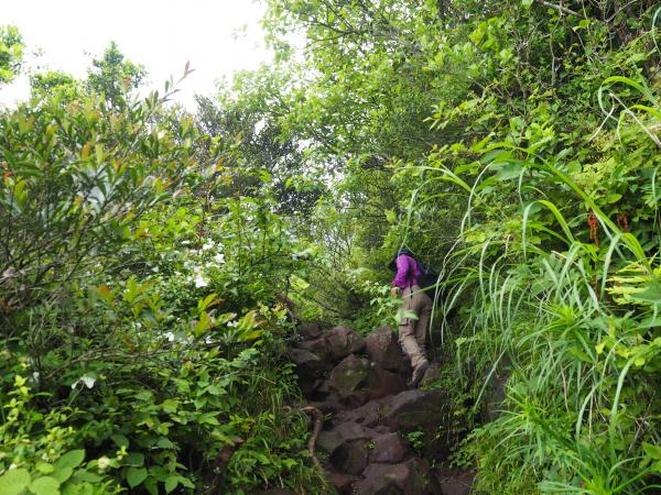 細い一本道の登山道なのでお互い譲り合ってすれ違いには注意しましょう。