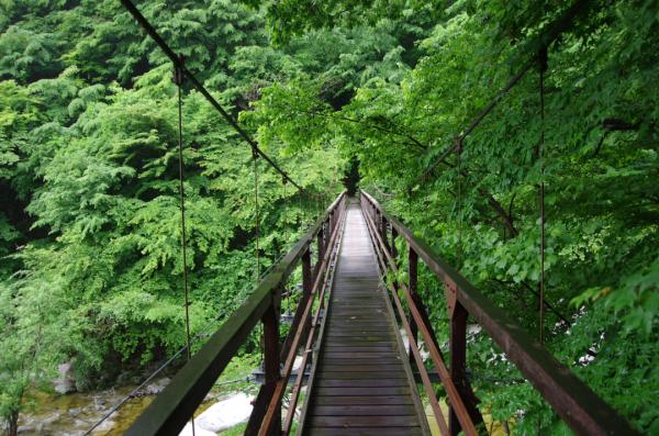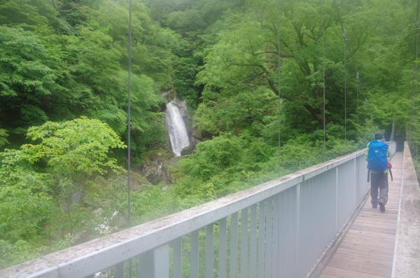 橋や鎖場がいくつかあり、雨で濡れて滑りやすくなっていました。