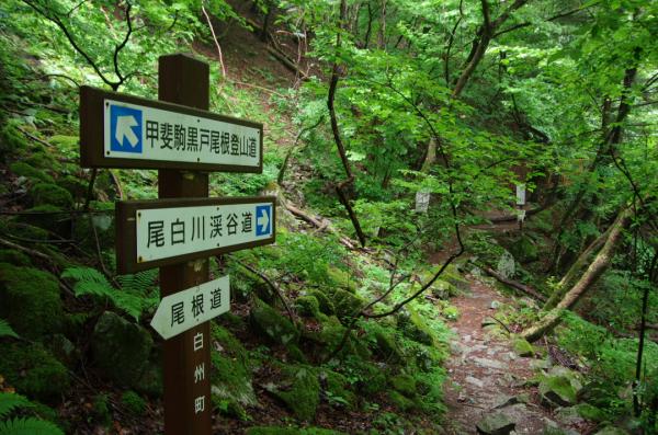 最初橋を渡ると、甲斐駒ケ岳へ登る黒戸尾根への分岐がありますが、今回は川沿いの道を歩きます。