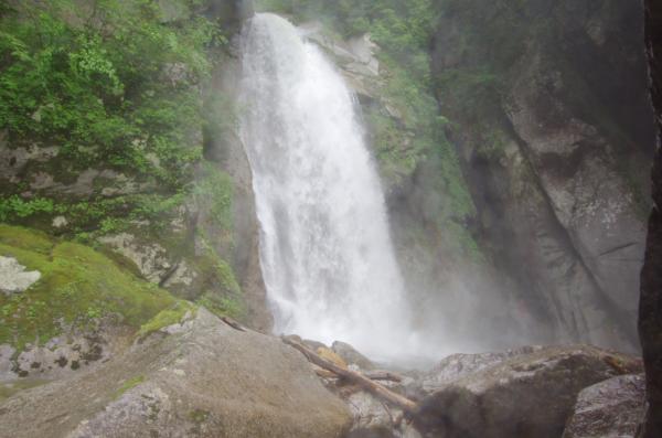 滝の真下まで行くことができ、雨のおかげで水量が増えた滝は大迫力でした。