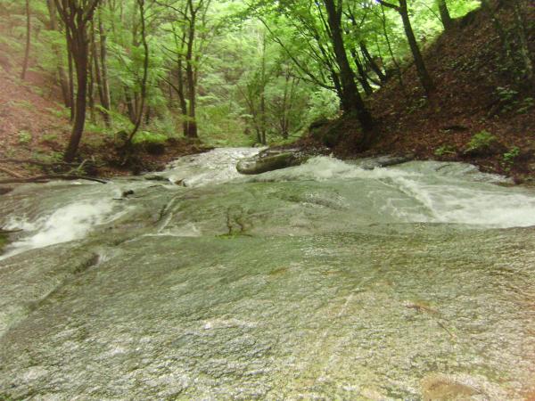 終了点付近のナメ床はきれいです。晴れていたらのんびりしたいところですね。