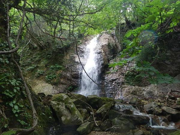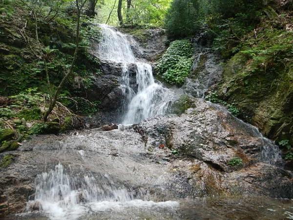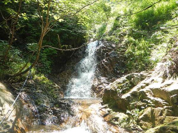 - うつろ谷出合P ⇒20分⇒ 最初の10m滝 ⇒120分⇒ くの字形ナメL20m ⇒40分⇒ 奥の二股 ⇒15分⇒ 赤坂山823m ⇒75分⇒ うつろ谷出合P