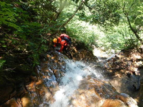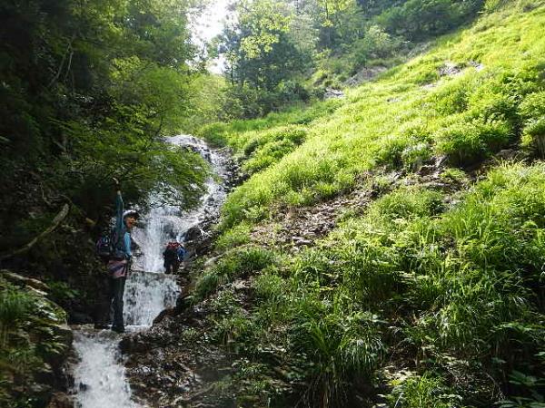 また、沢上部の連続ナメ・源頭部では沢山の支谷の流れ込みがありました。