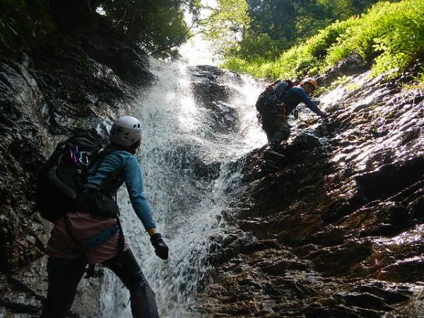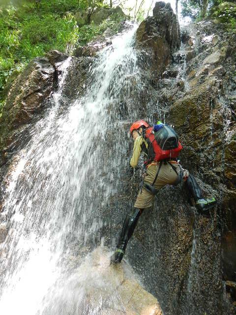 堰堤を超えてすぐの10m滝に圧倒されました。最大20m滝はスリル満点でした。