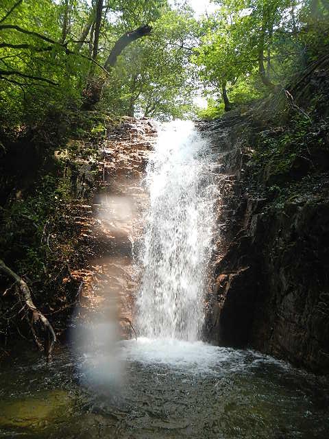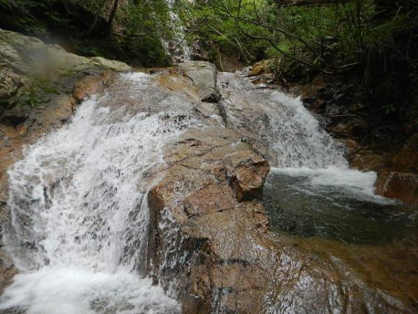 遡行はメイン滝、ゴルジュ、ナメ、小滝、小連瀑と楽しめる沢です。