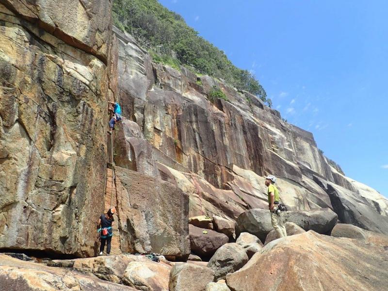 本日は、西壁正面、奥リスノーマル(2ピッチ)、トビラノーマルをリードさせていただき、その後一旦奥リスの基部に戻り、私の所属する会でビレイ検定と言われる講習をしました。その主な内容は、