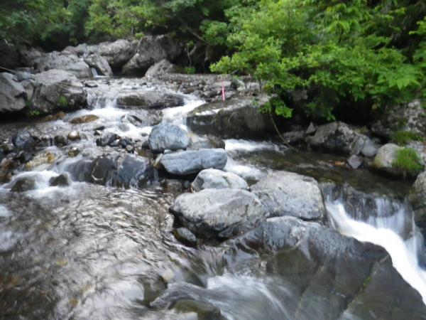 登山口からしばらく樹林帯を歩いていきます。途中に2カ所、渡渉あります。