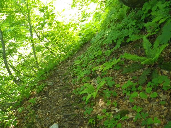 樹林帯をジグザグと下って行きます。1カ所渡渉する場所が有ります。