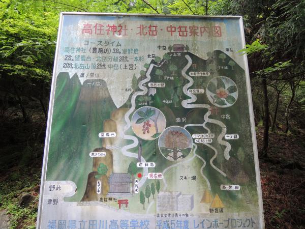- 高住神社(30分)溶岩の壁(10分)鎖場(15分)北岳(30分)中岳(20分)行者堂