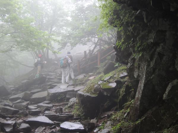 - 高住神社より岩の多いコースを登る。雨で濡れて滑りやすいので注意が必要です。