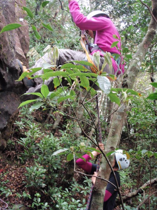 - 雨上がりで、当初予定の坊主岩はずぶぬれで中止。金剛岩は、しっとりとはしていたが練習できた。