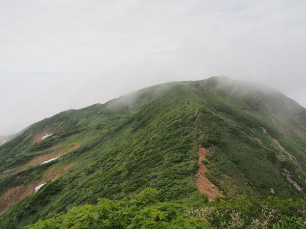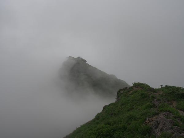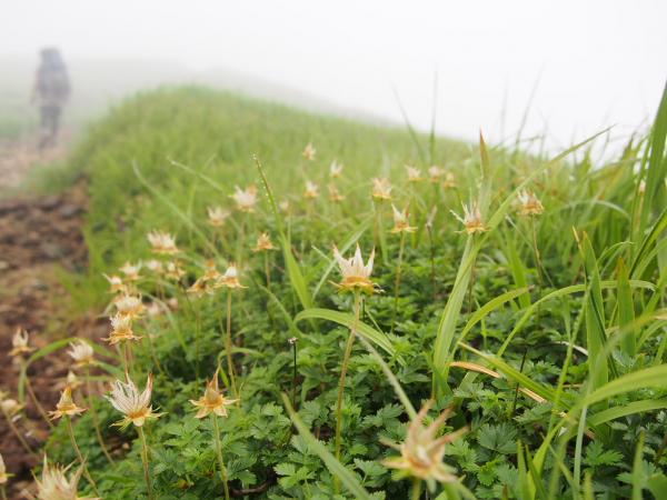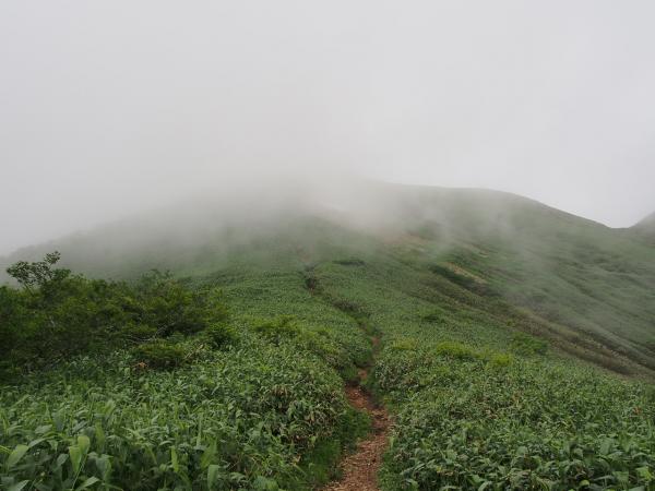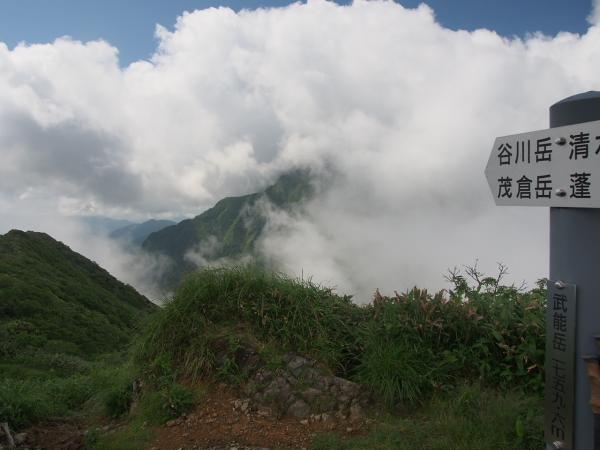 辛い登りを越えても雲で谷川岳山頂付近、行く先は見えず…結構変わりやすい天気でした。