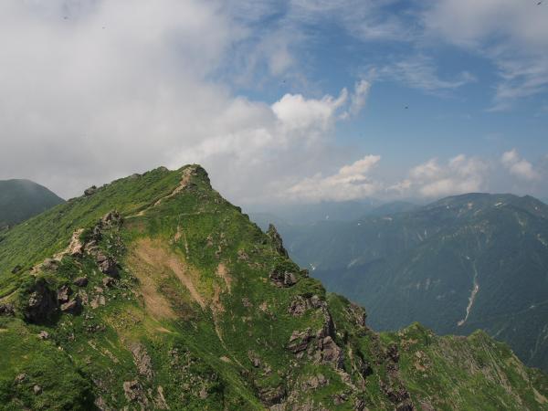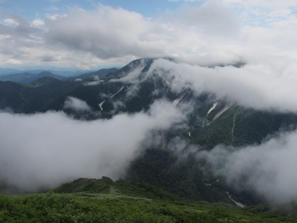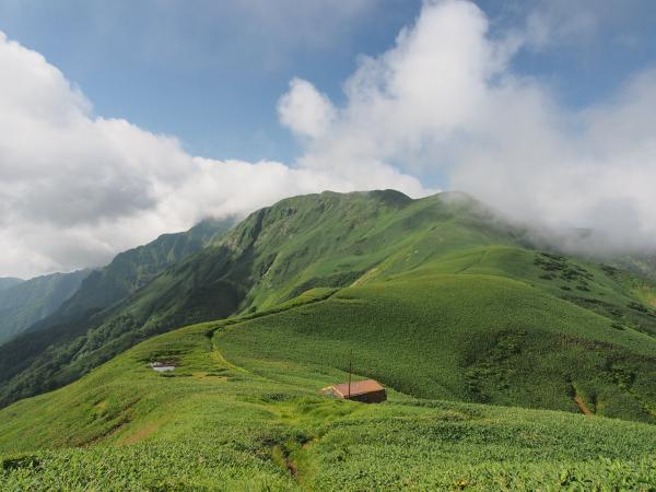 - 7/14 白毛門登山口(235分)白毛門(70分)笠ヶ岳(85分)朝日岳(100分)清水峠(テント泊)