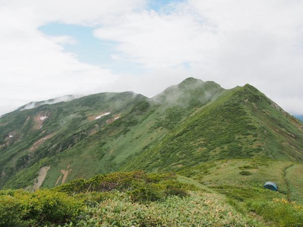 1日目は白毛門、笠ヶ岳、朝日岳を経て清水峠でテント泊。