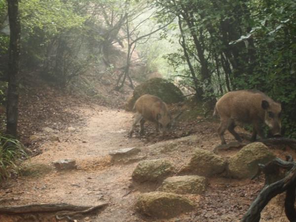 (イノシシが私が進みたい方向にいますが)意外と側を通っても大丈夫なのかな?と