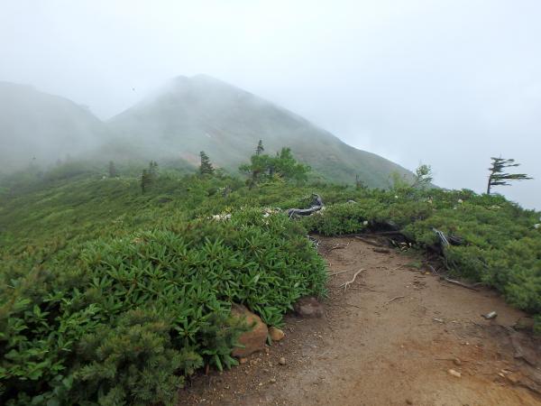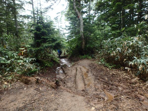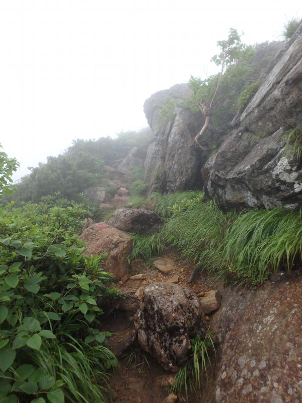 17日も朝から雨…上下レインウェアを着て、憂鬱な気持ちで登り始めて、時折雨が止むと暑くなり、脱いだり着たりを繰り返しました。