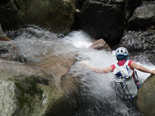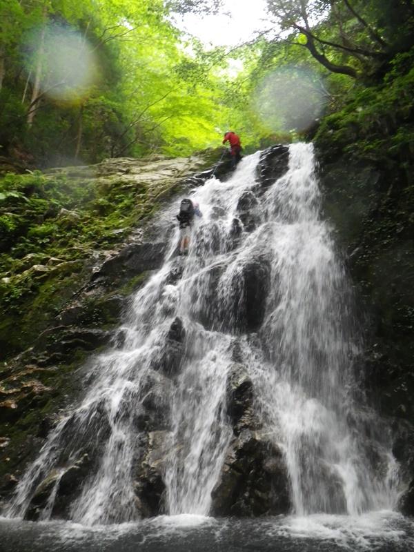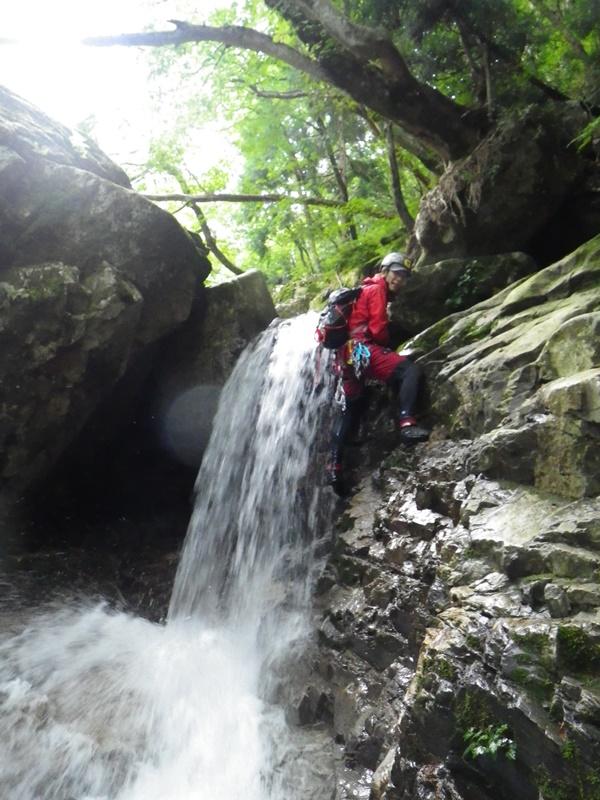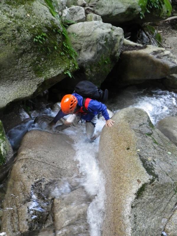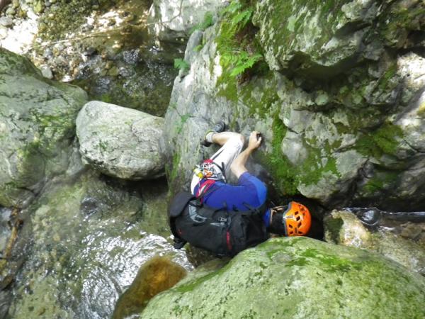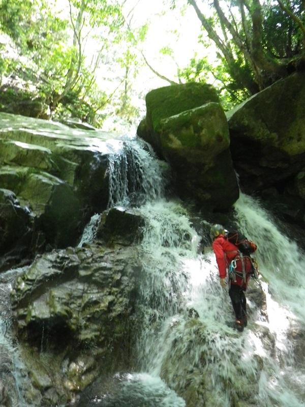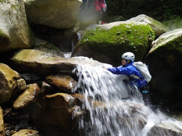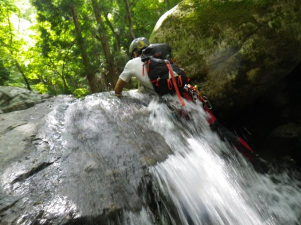 序盤は小さい滝ばかり。しか直登していくとなるなかなか難しい。ボルダームーブ全開です。