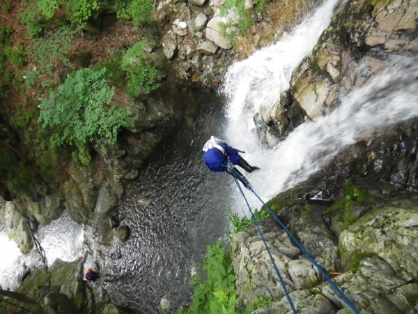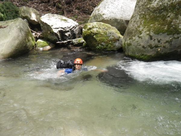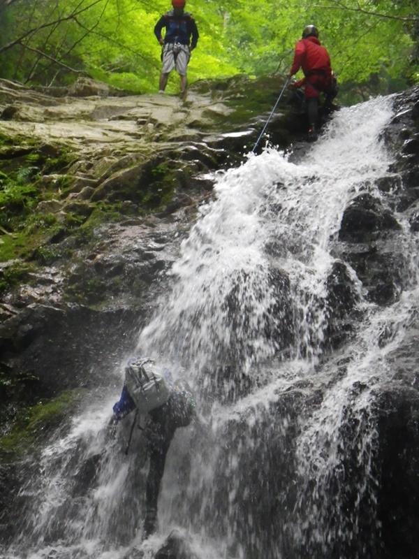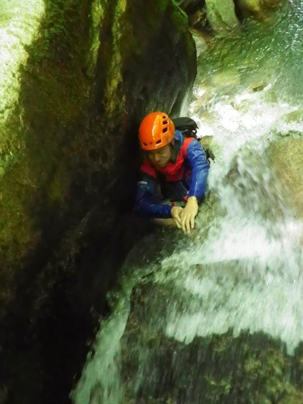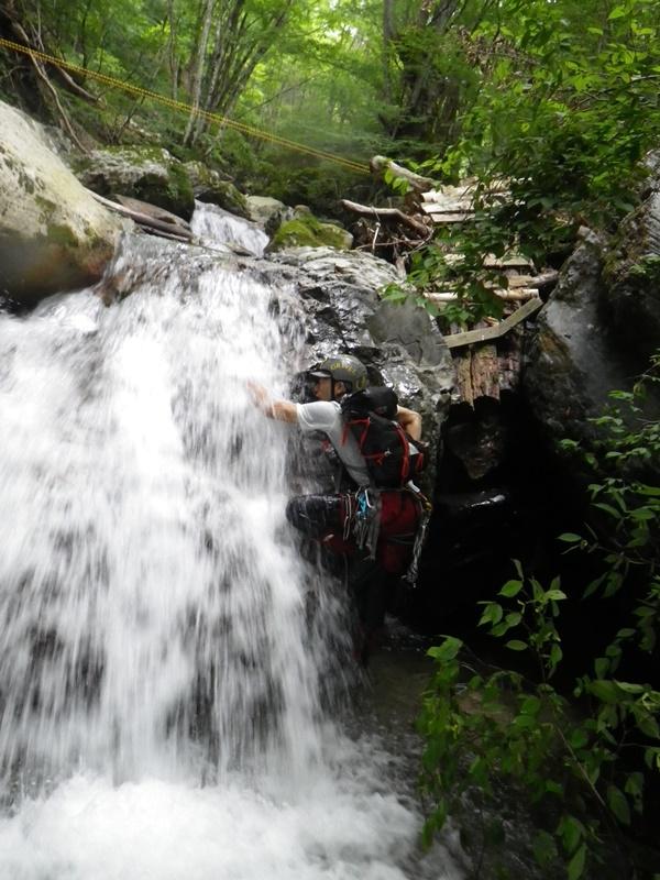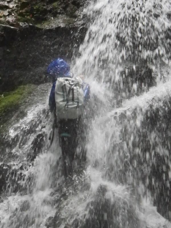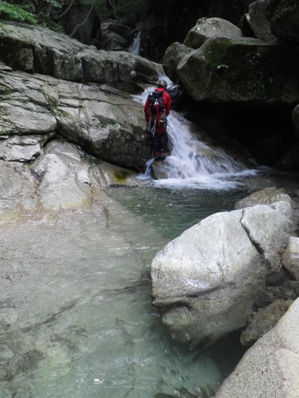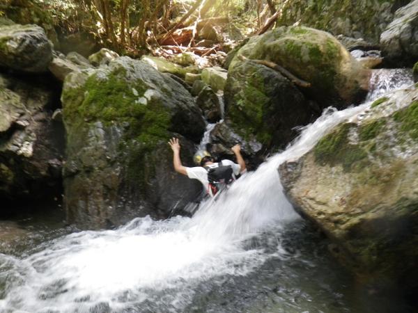 序盤は小さい滝ばかり。しか直登していくとなるなかなか難しい。ボルダームーブ全開です。