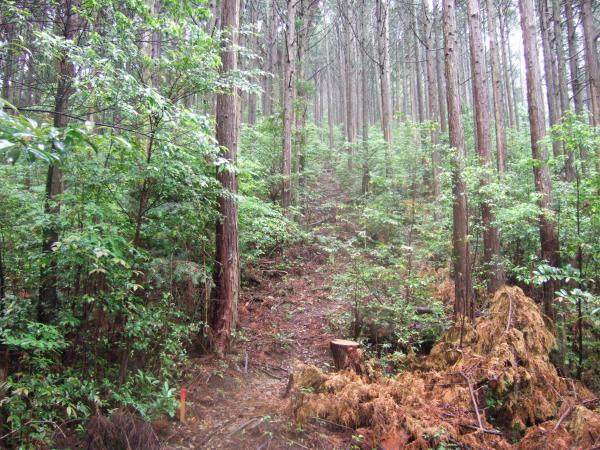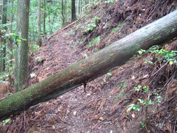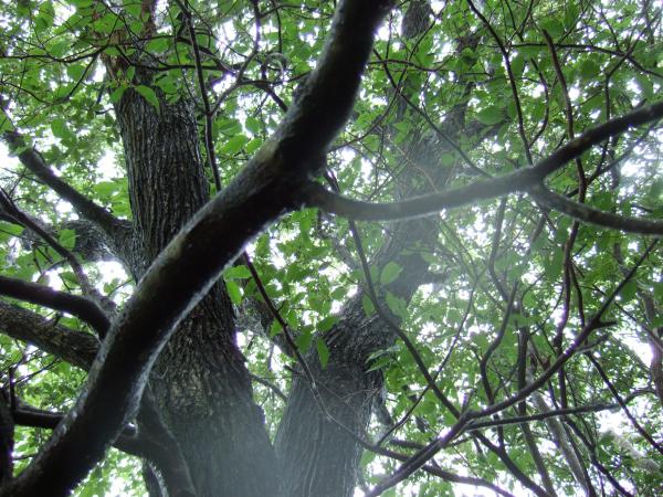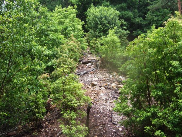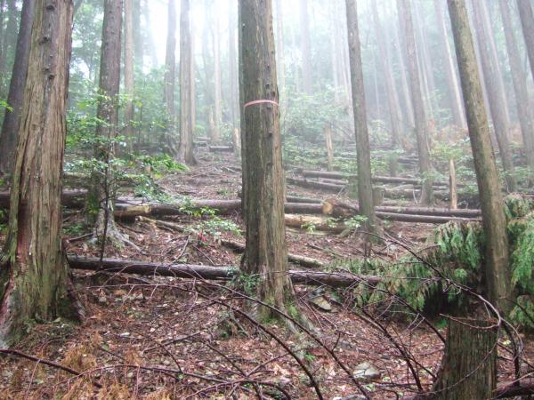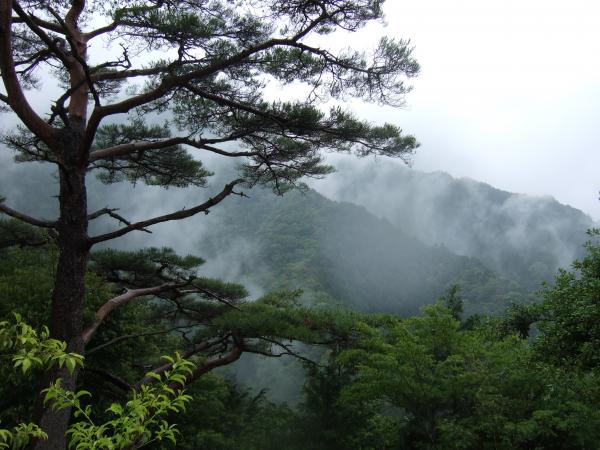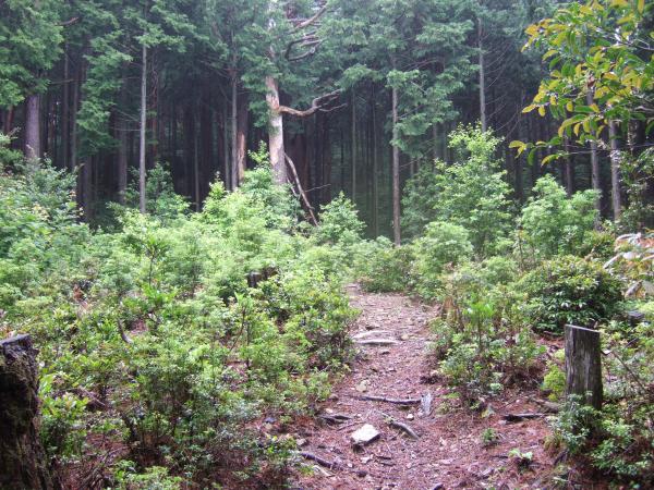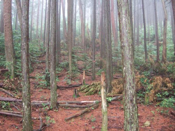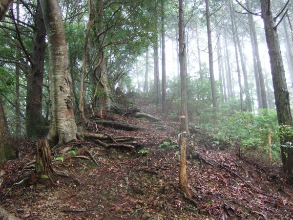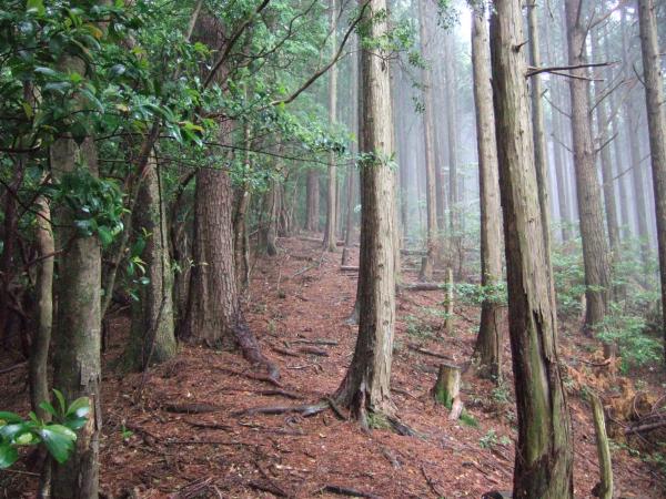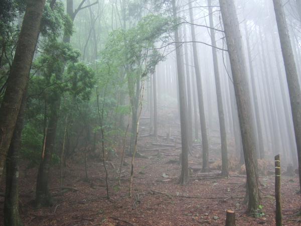 小雨が降り続く中、「やんでくれないかなあ」と念じながら霧の中、たまに空を見上げて歩きました。