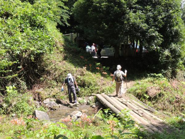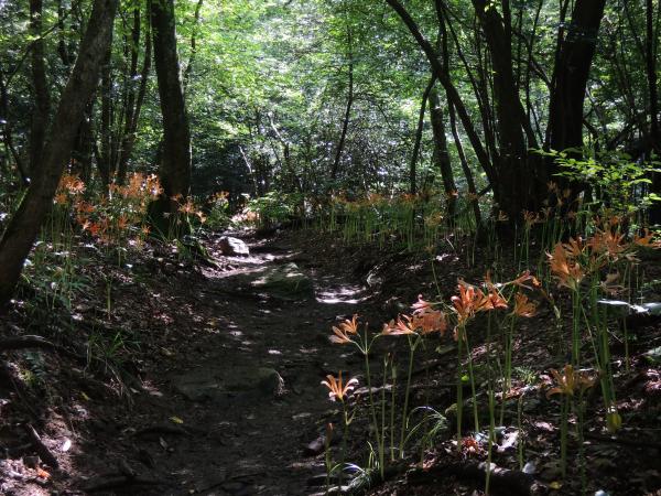 - 沢沿いに緩やかな登山道を歩きます。濡れた岩が滑りやすいのでストックは必携です。