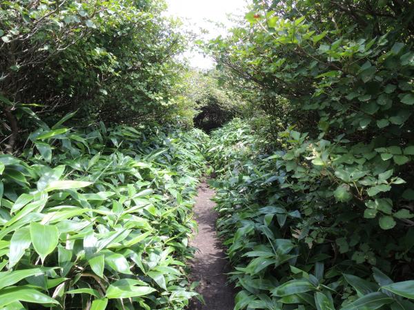 山頂からの下りは急斜面を20分程度下ればなだらかな登山道が水無駐車所まで続きます。