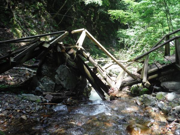 - ■今年は大雪だったようで遊歩道に架かる橋が崩壊していました。また、入渓点に向かうまでの道や、中津川林道にも落石が多くありました。通過時は気を付けて下さい。