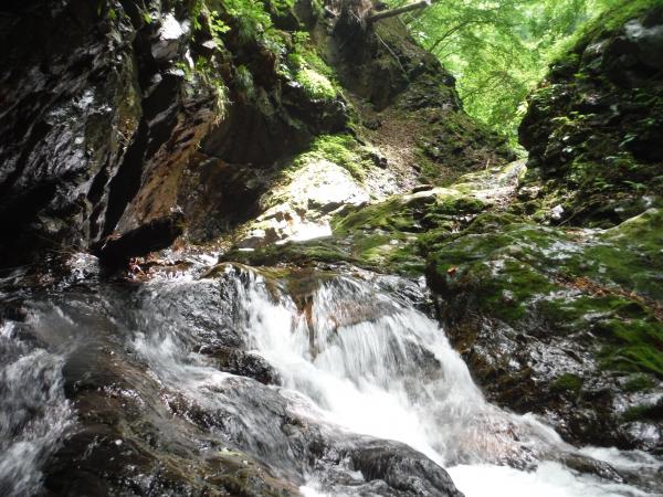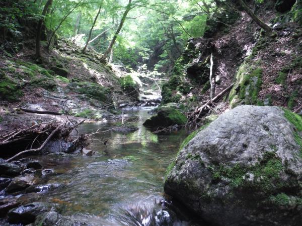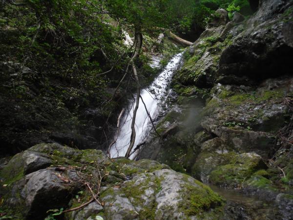 ■沢自体は初級ですが、下山路を遊歩道とする場合、しばらくの期間(遊歩道の整備が完了するまで)何度か沢に下りて沢沿いに下る部分が出てきます。どこで沢に下りるかも含め、初心者だけで入渓するのは危険です。