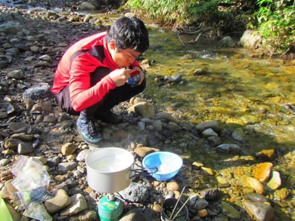 地図通り真川沢に出て、キンキンに冷えた沢の水でソーメンを食べる。