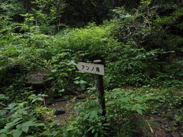 - 往路:登山口(キトク橋)==(60分)==アンノ滝==(45分)==水無分岐==