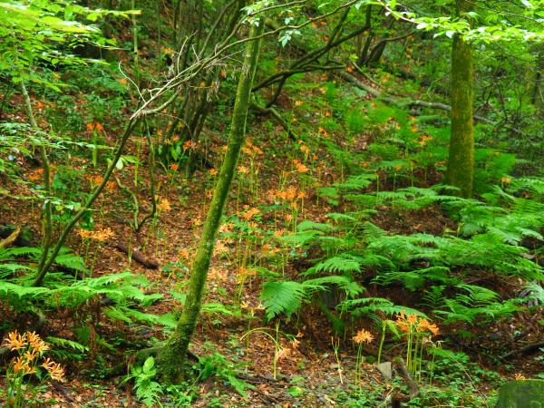 復路:オオキツネノカミソリ群生地==(20分)==水無分岐==(30分)==