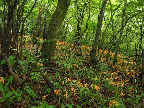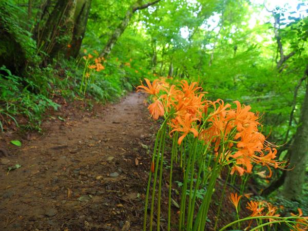 群生地まではまったくオオキツネノカミソリの気配はありませんが、沢沿いを進みますし、アンノ滝で涼む事もできますのでこちらのコースもオススメです。