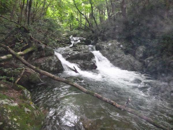山乗渓谷は およそ3分割できます。今回は下のコースです。下部には3メートルを超える滝はありません。普段は何ともないコースですが、雨が多いため増水していて 腰まで水に浸ったり巻いたりしました。