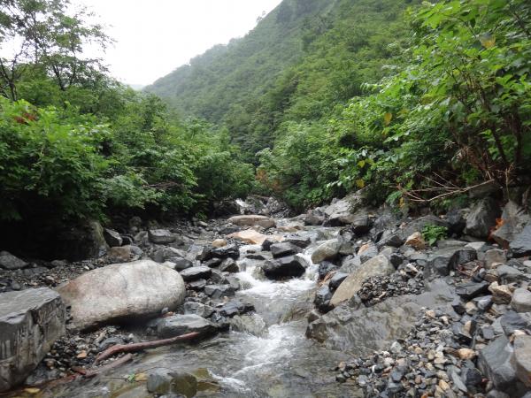 沢登り第二弾は谷川岳の白樺沢に挑戦。入渓後から小雨がパラパラ、白樺沢出合に着く頃には山の稜線はすっかりガスに覆われてしまったので本日の遡行はここまで。途中敗退しましたが、谷川のダイナミックな沢を少しだけ満喫できました。