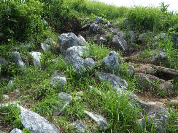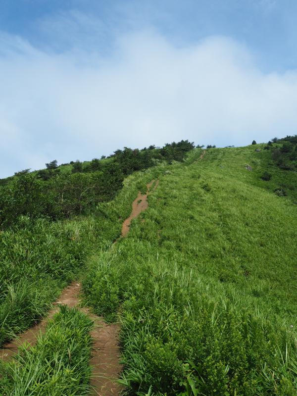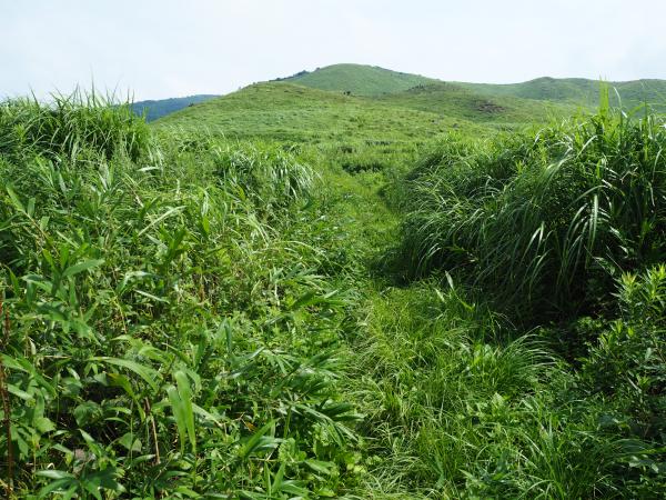 下りは中峠を通り茶ヶ床園地へ。やはり登山道がかなり滑りやすく気を付けて歩きました。茶ヶ床園地から遊歩道を吹上峠へと戻ったのですがこの遊歩道がまたまた草だらけ。半袖は避け足元にはスパッツを巻いておくと汚れないと思います。途中ドリーネという雨水や地下水によって石灰岩が溶けてできるすり鉢状の窪地を通るのですがスケールが大きすぎて“穴”という感じがわかりませんでした。