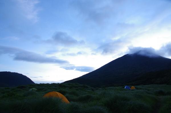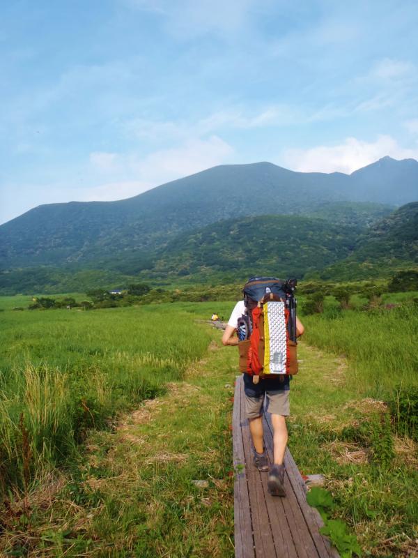 前回4月に坊ガツルを訪れて以来、その居心地の良さにすっかり魅了され、次に訪れるときは花と山ごはん(もちろん温泉も)をのんびり満喫したいと思っていました。今回はお盆真っ只中ということもあってか、坊ガツルのテント場は40~50張り程のテントで埋め尽くされ(と言っても坊ガツルテント場はとても広いので窮屈感は全くなし)、子供連れのファミリーが多く、賑やかな雰囲気でした。長者原(ちょうじゃばる)の登山口から坊ガツルまで取り立てて大きな起伏もなく、コースタイムで約2時間弱というお手軽さも人気の一因でしょう。