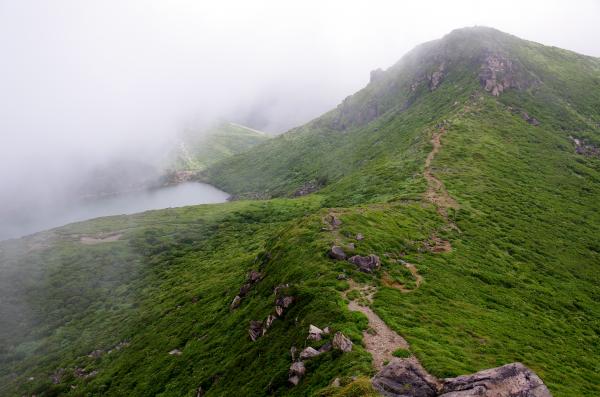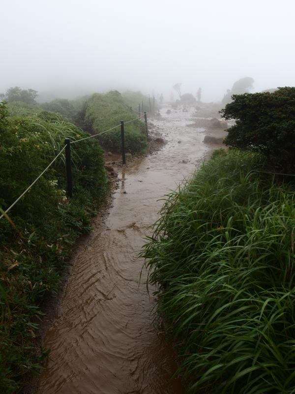 2日目の天気予報は良くなかったのですが、朝は思いのほか良く予定どおり鉾立峠経由で中岳・久住山方面に向かいました。鉾立峠から白口岳への登りは、急登のうえ土が滑りやすく時間がかかりました。雨が降るとさらに悪くなりそうです。中岳山頂では三俣山や久住山が時折顔を覗かせましたが、その後天気が急変した為、星生山・久住山には寄らず、牧ノ戸峠までまっすぐ下りました。牧ノ戸~長者原も歩く予定でしたが、雨が強かったので15時30分牧ノ戸峠発のバスで長者原まで戻りました。