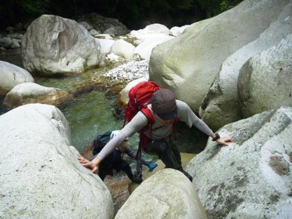 初心者を連れて、沢遊びをしてきました。多少岩をよじ登ったりしますが、