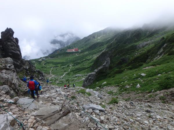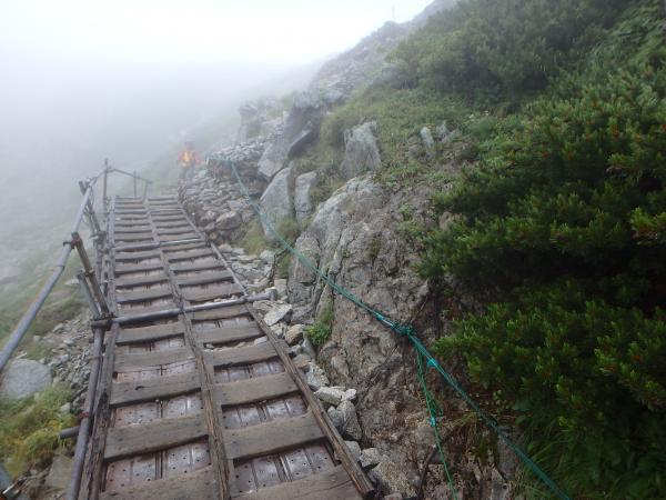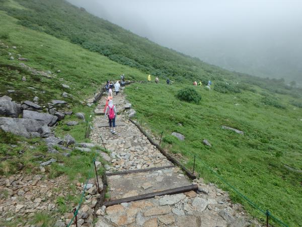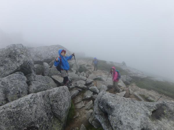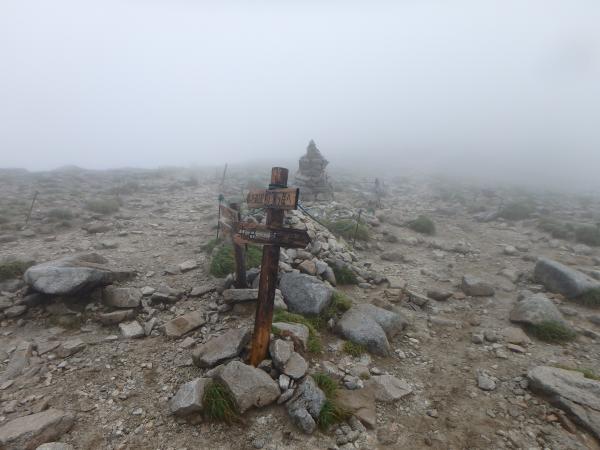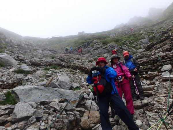 下界では天気が良好でしたが、上の方はガスも多く、常に霧雨の状態でした。