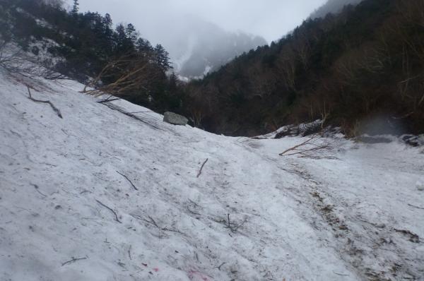 - 雨の為、横尾から涸沢の間が非常に滑りやすかった。雪道も雪が締まっておらず歩きにくかった。涸沢までアイゼンはつけなかった。