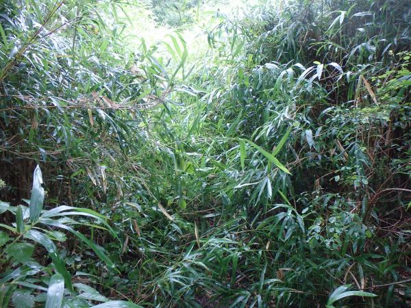 東おたふく山 への道は途中、背丈以上の草に覆われており、雨上がりで草が濡れていたので全身がびしょ濡れに。雨が降ってなくても、雨上がり時は上下の雨具の着用をおすすめします。