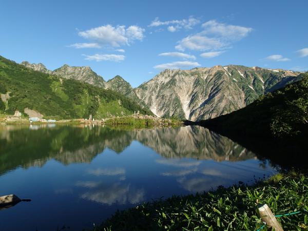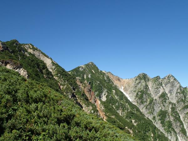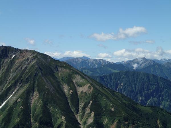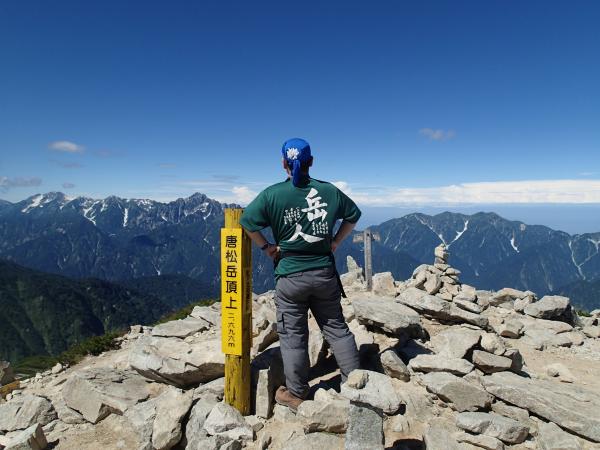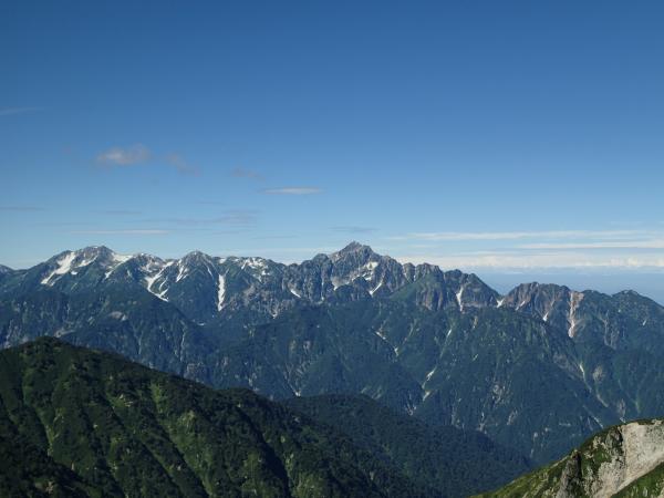 自分達が登る前日は悪天で白馬で事故もあったとのことだが、天気予報もはずれ、幸いにして絶好の好天に恵まれた。人が多いという印象の八方池も(現に下山時は人であふれていた)八方池山荘からスタート出来たことでリフト客もまだおらず、ほとんど貸しきり状態。立ち寄った白馬店の富田店長のおっしゃったとおり朝イチ故か天気も絶好。ずっと右手に白馬三山、左手に五竜岳を望みながら登る事ができ、唐松山荘に出たとたん、剣岳、立山、薬師岳と続いて行く稜線や毛勝三山に迎えられ、ピークからは槍ヶ岳まで確認できた。嫁や義兄さんにいいものを見てもらうことができて良かった。