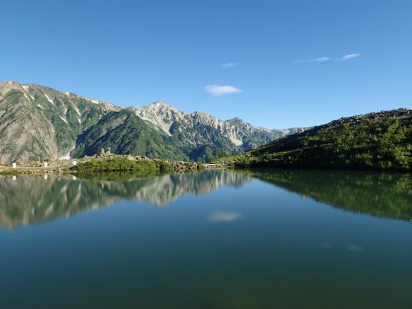 - 八方池山荘(70分)八方池(50分)扇の雪渓(50分)唐松山荘(15分)唐松岳(60分)丸山ケルン(55分)八方池(60分)八方池山荘