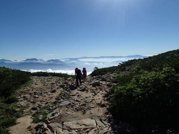 そこから先も初心者二人を連れて歩いても特に不安のないコース。石の階段等、整備される方に頭が下がる。木道にしろ、岩にしろ、雨で濡れると滑りやすくいきなりグレードが上がりそうなので、やはりしっかりしたトレッキングシューズは必要だが。小学校3年生の少年も、トレッキングシューズを履いて登っていた。