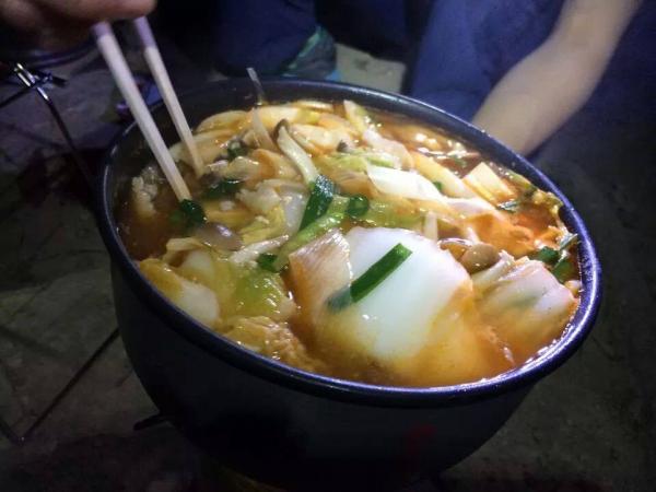 ・朝3時の朝食時、着込んでも寒くて、私だけ朝ごはんをテント内で。