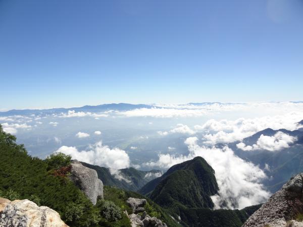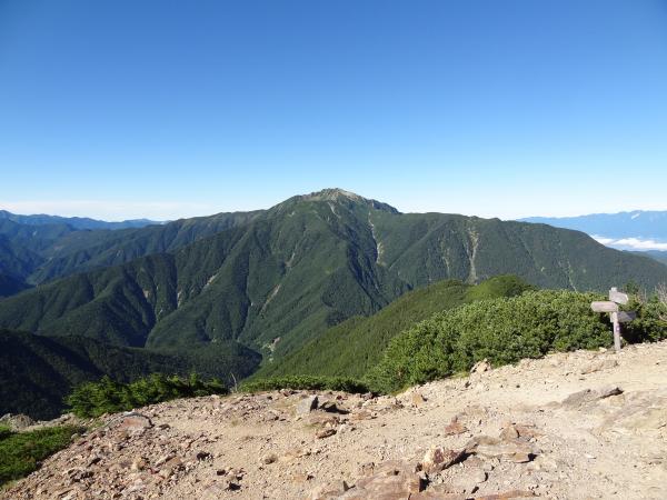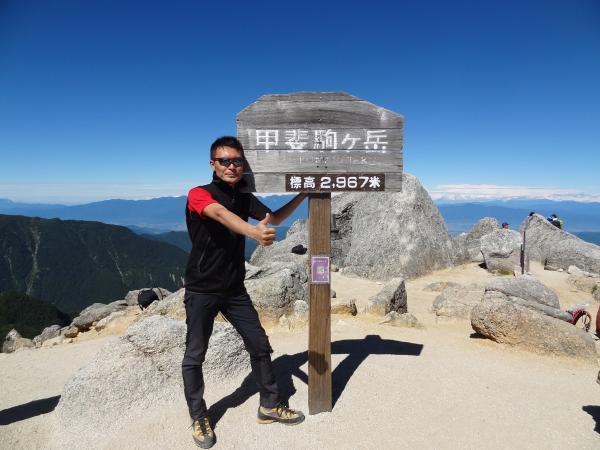 甲斐駒ヶ岳を望むことができます。山頂は広く絶好の休憩スポットです。
