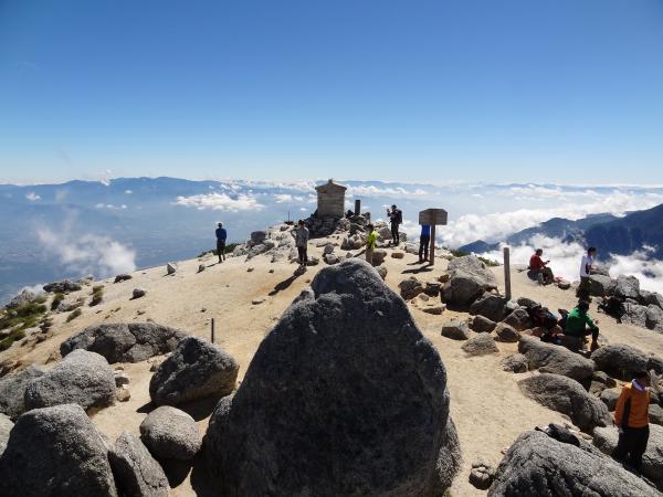 山頂では360度の眺望が望め、多くの登山者が景色を楽しんでおりました。