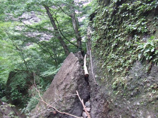 足を広げ突っ張りながら降りて行くので、小柄な私には届かない個所もあったので、良く岩を見ながら右に行ったり、左に行ったりしながら探り探り降りました。