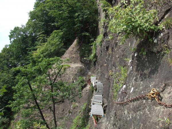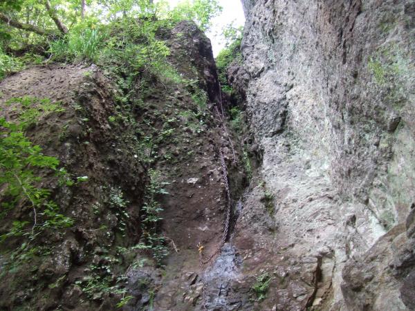 初めの一歩が大きく、鎖が垂れているだけの恐怖もありましたが、セルフビレイをとって登頂、下山。